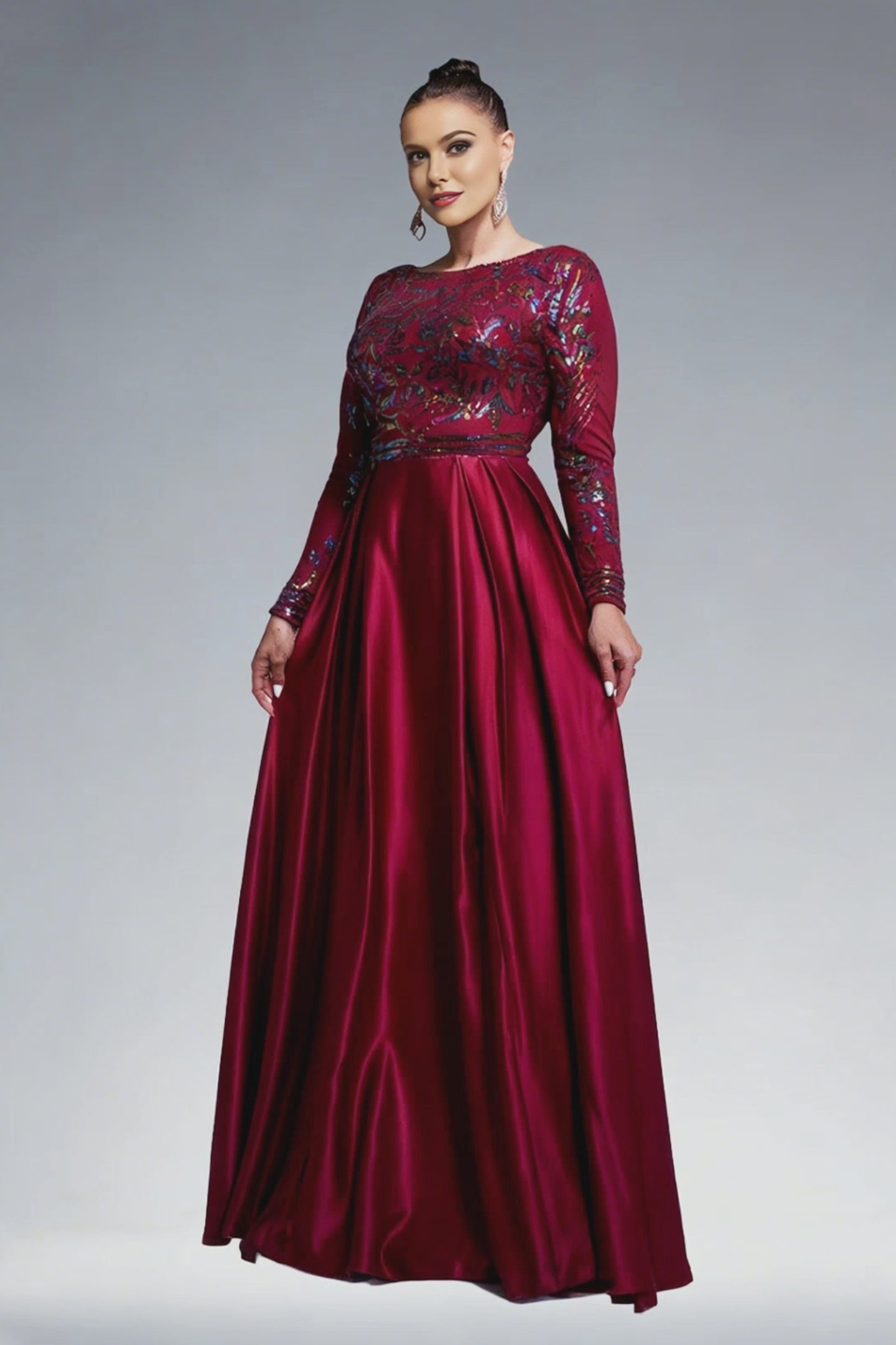 Shine effortlessly in this plus size round neck maxi dress, designed with sparkling sequin panels that elevate every movement. The long sleeves and flattering silhouette offer both comfort and elegance, perfect for evening events or special celebrations. A statement piece that brings confidence, glamour, and timeless charm.