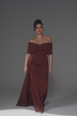 This plus size off-shoulder maxi dress is designed to flatter every curve with a sleek bodycon silhouette and a graceful single-side ribbon detail. The elegant drape creates a chic yet effortless look, perfect for evening parties or special occasions. Embrace timeless femininity with a style that blends comfort, confidence, and modern glamour.