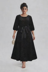 Add effortless elegance to your wardrobe with this plus size round neck midi dress, featuring delicate embroidery and a flattering tie-waist design. The adjustable waist enhances your natural shape while offering all-day comfort. Perfect for brunch dates, garden parties, or casual evenings out, this dress blends timeless charm with modern femininity.