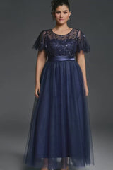 Embrace effortless elegance in this plus size sheer maxi dress, featuring a flattering round neckline, batwing sleeves, and delicate floral patterns. The cinched waist enhances your curves while the flowing silhouette creates a graceful, feminine look. Perfect for evening events or special occasions, this dress blends comfort, sophistication, and timeless style.