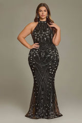 Curveins Plus Size Sleeveless Sequin Pattern Maxi Dress