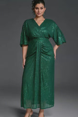 Curveins Plus Size Solid Color V-Neck High Waist Sequin Maxi Dress