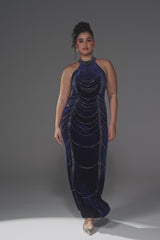 Curveins Plus Size Spaghetti Strap Sleeveless Chain Waist Bodycon Velvet Maxi Dress