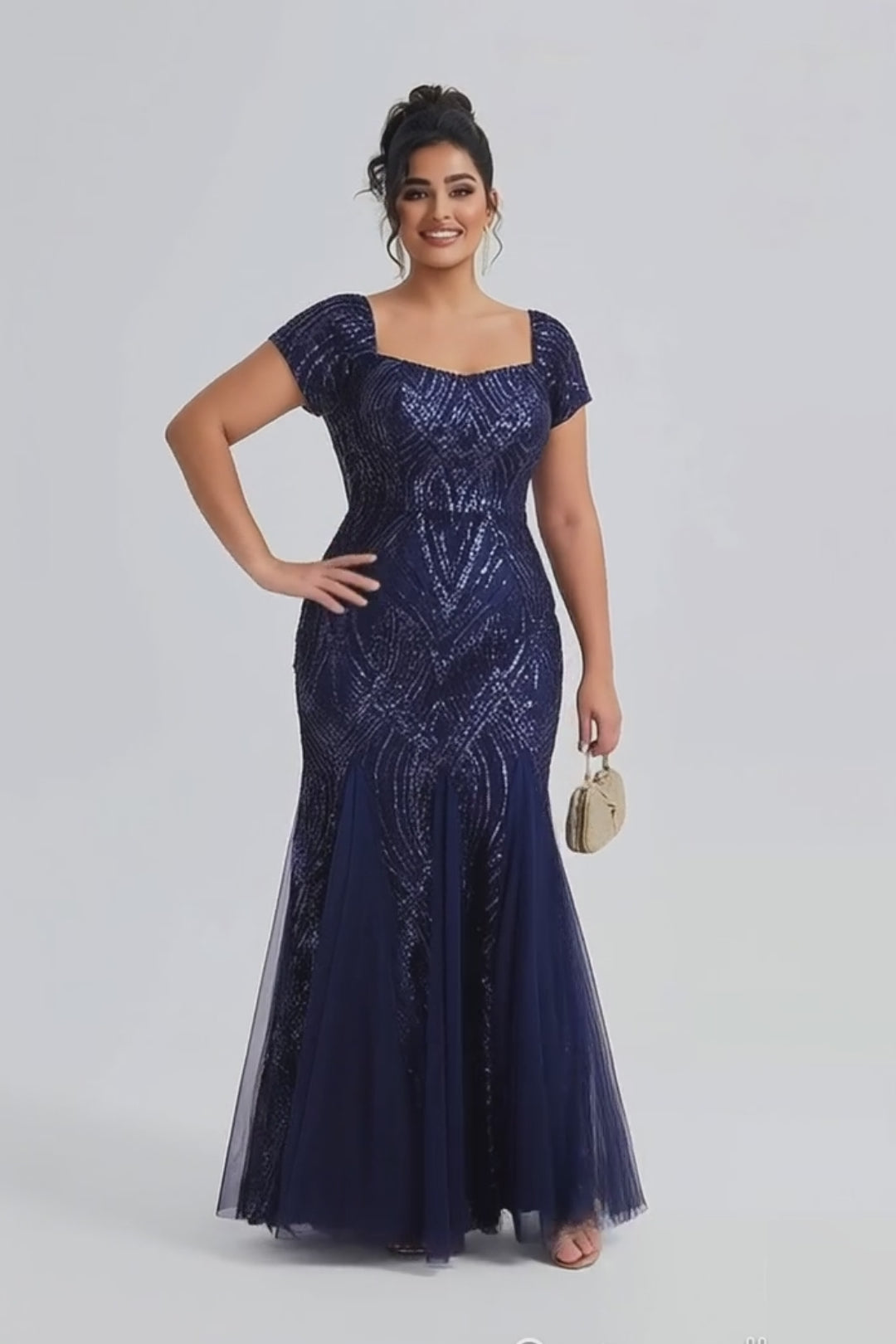 Designed to flatter every curve, this plus size maxi dress features a chic square neckline, short sleeves, and all-over sequin detailing for radiant shine. The bodycon silhouette highlights your shape while remaining comfortable to wear. Perfect for evening events, parties, or special occasions when you want to stand out with confidence and glamour.