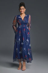 Curveins Plus Size V-Neck Floral Mesh Maxi Dress