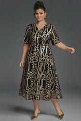 Effortlessly elegant, this plus size floral midi dress features a flattering V-neckline and soft lantern sleeves for a touch of romance. The cinched waist enhances your curves while the vibrant floral pattern adds a timeless feminine charm. Perfect for brunches, garden parties, or everyday elegance.