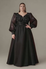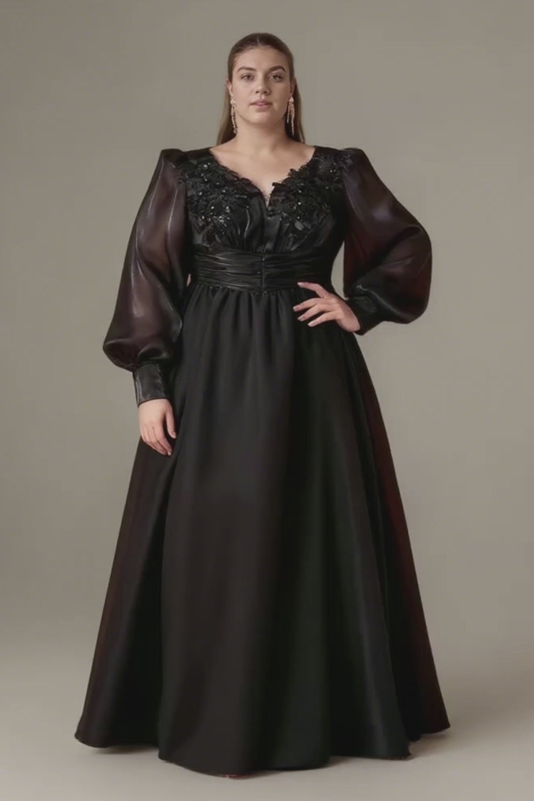 Grace meets comfort in this plus size V-neck A-line maxi dress. The soft lantern sleeves and flowy silhouette create an effortlessly elegant look that flatters every curve. Perfect for special occasions or casual sophistication, it’s a timeless piece designed to make you feel confident and beautifully comfortable.