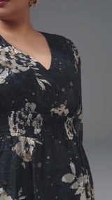 This plus-size V-neck long sleeve dress features a beautiful floral pattern with a flattering slit at the hem for a touch of elegance. Its comfortable fit and versatile design make it perfect for any occasion, offering both style and comfort. Embrace your curves in this chic, timeless piece that highlights your natural beauty with effortless charm.