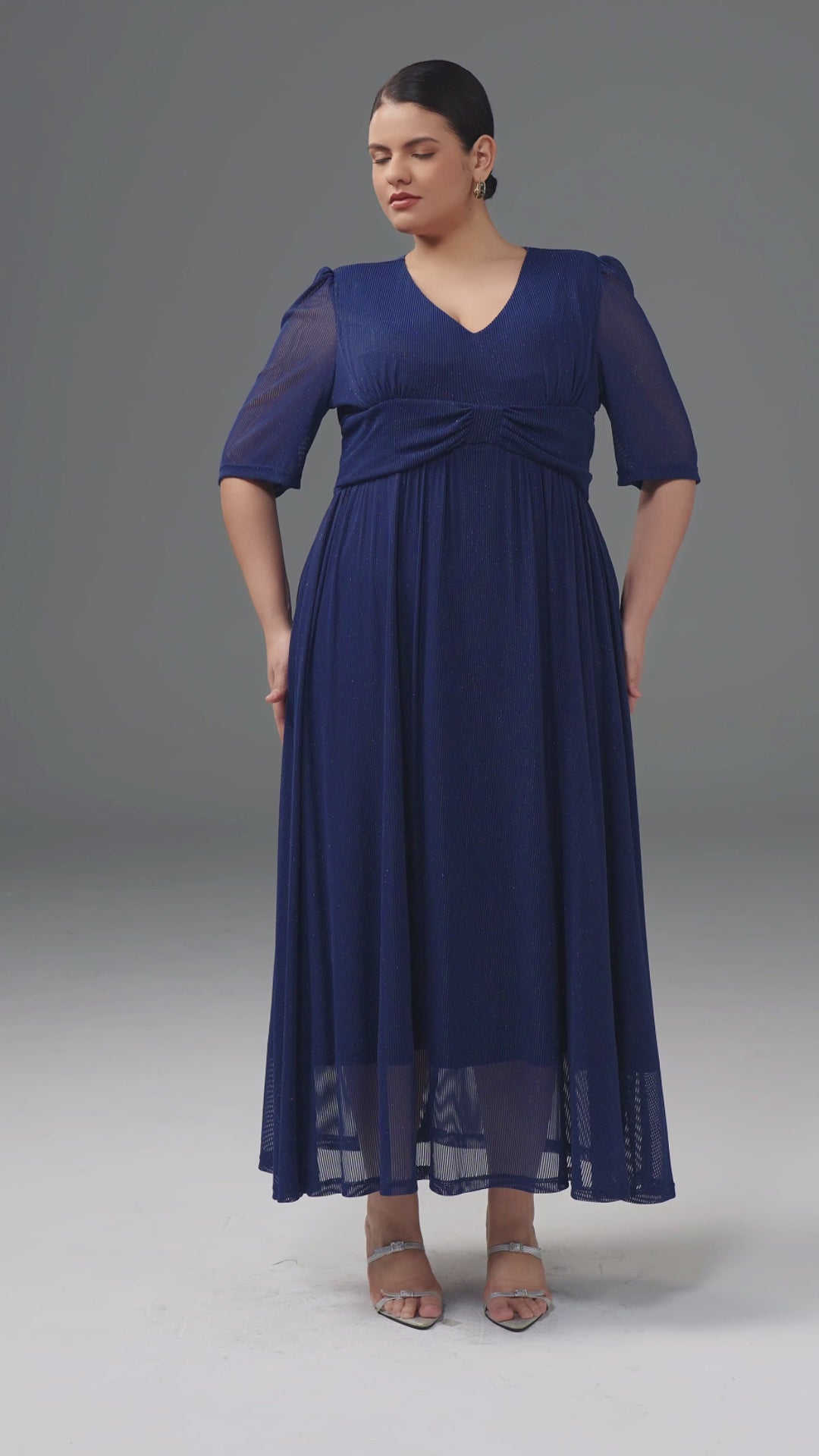 Curveins Plus Size V-Neck Long Sleeve Ruffle Hem Maxi Dress