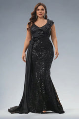 Shine with confidence in this plus size fitted V-neck maxi dress, featuring elegant sequin patchwork and soft ruffle sleeves. Designed to flatter your curves while offering comfort and sophistication, it’s perfect for evening events, parties, and celebrations. Make every moment memorable with its graceful sparkle and timeless femininity.