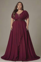 Step out in style with this plus size V-neck maxi dress, featuring short sleeves and a unique asymmetrical hem. The A-line silhouette flatters your curves while offering a flowy, elegant movement. Perfect for casual outings, brunches, or summer events, this dress combines modern design, comfort, and effortless feminine charm.