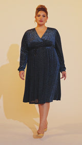 Curveins Plus Size Leopard Velvet Wrap Midi Dress