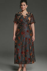 Curveins Plus Size Velvet Surplice Vintage Plain Maxi Dress